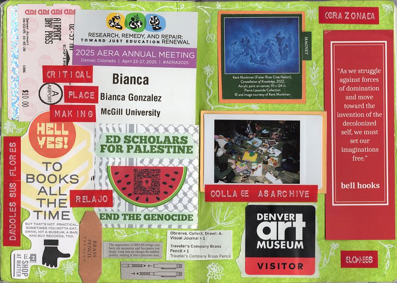 What has been especially exciting for me is noticing how, alongside the evolution of my junk journaling process, I can also feel a shift in how I navigate conferences. Despite AERA being a huge and quite industrial space, I was able to quiet my imposter syndrome, navigate sessions intuitively, and overall feel more engaged, inspired, and connected. I learned and unlearned with fellow doctoral students and established scholars. I crossed paths with familiar faces and made meaningful connections…and, of course, I gathered little keepsakes and artifacts from the movement and special moments.